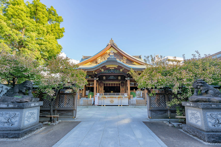 Yushima Tenmangu, a central Tokyo shrine honoring the god of learning,blends solemnity with urban convenience.Popular among international couples,it features a photogenic red-carpeted corridorand impressive dragon ceiling art.Known for plum blossoms and year-round beauty,it's a favored wedding venue for memorable ceremonies.